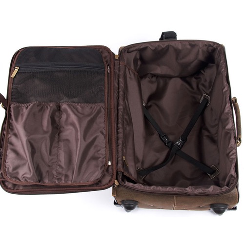 - Foldout suiter with cushioned strap, shoe compartments