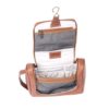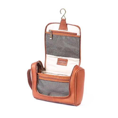 - This all leather travel kit hangs neatly from the door