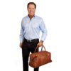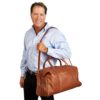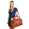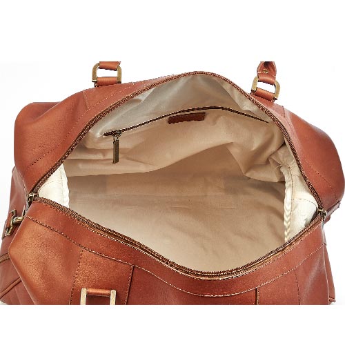 - Carry bag by two leather handles with closure or all leather adjustable, removable shoulder strap